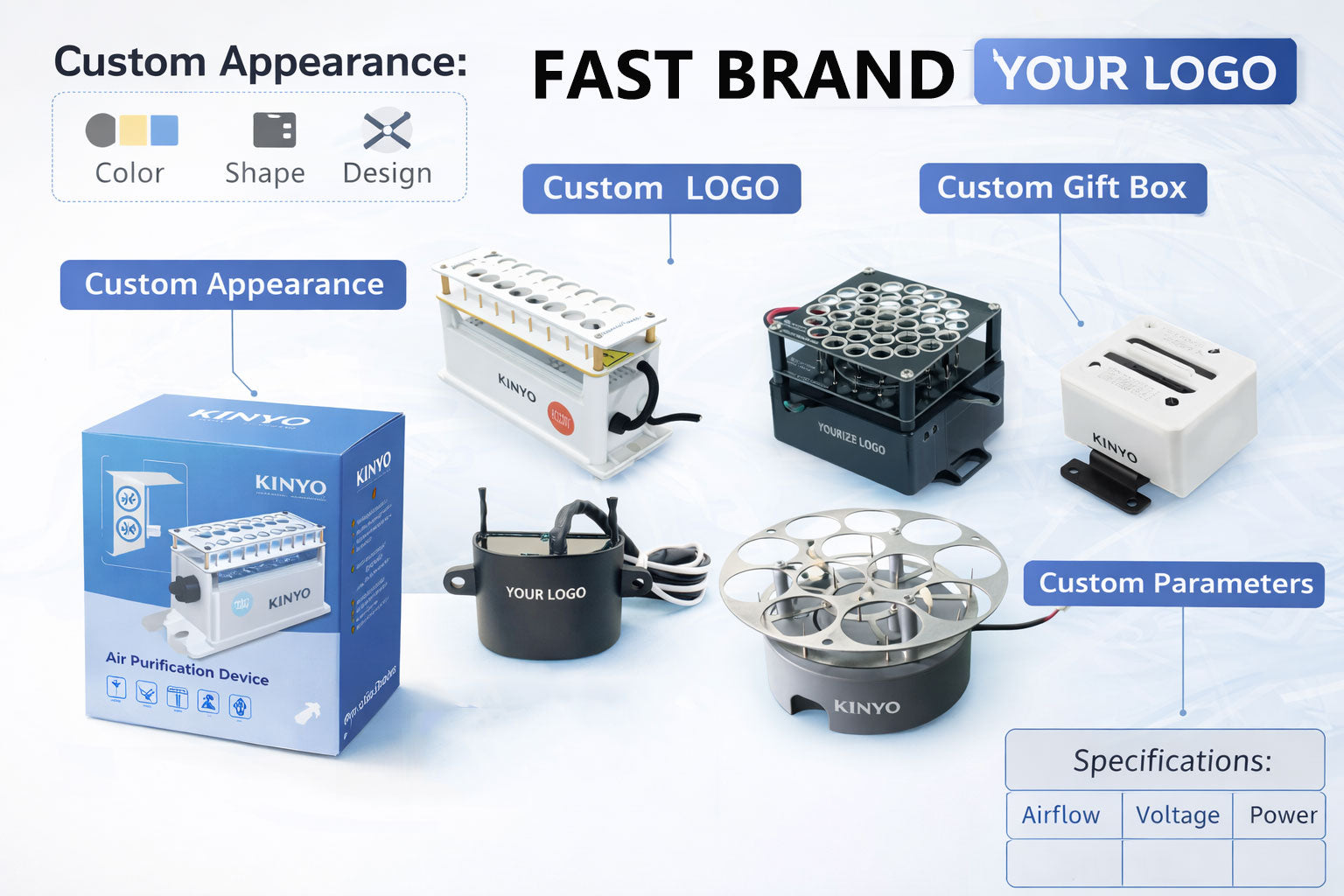 - Ozone free, low noise, long life.